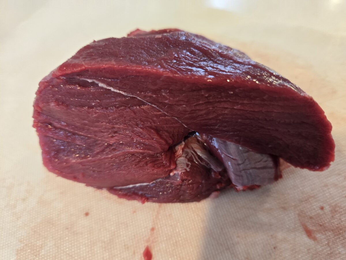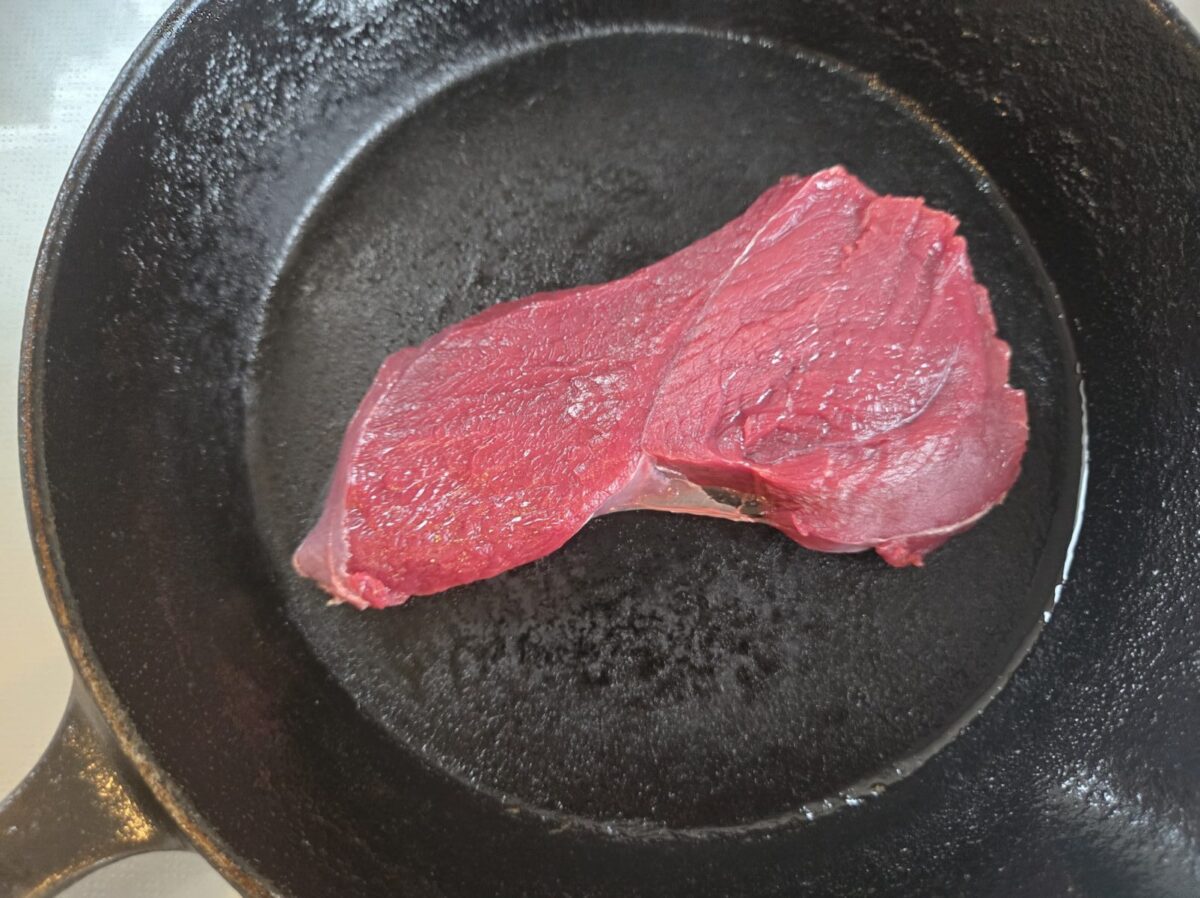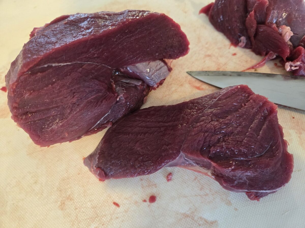 ・鹿の生肉を用意する(解凍後不可、なるべく背ロースかモモ)