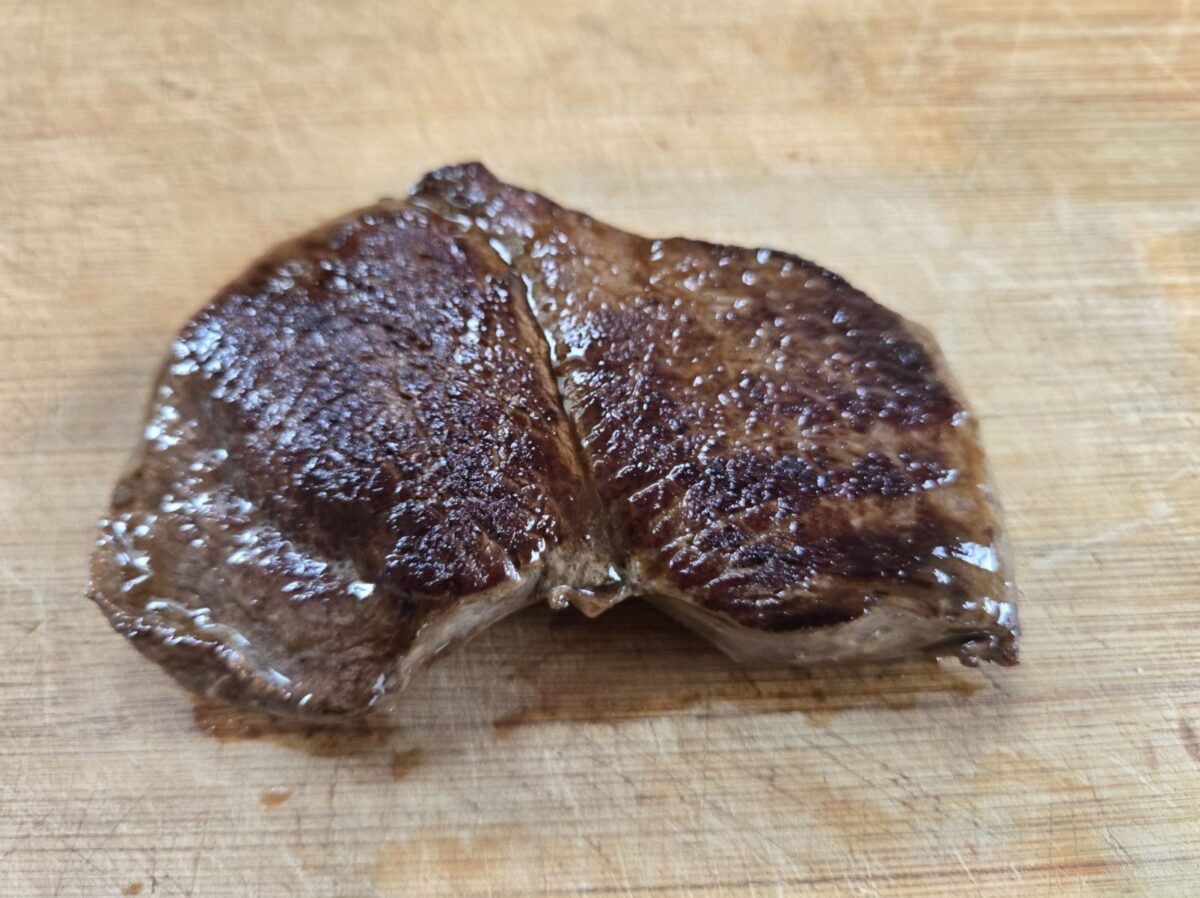 今度はバターを上にゆっくりかけてフランス料理っぽくしてみたけど、こちらは熟成肉の美味しさをあまり感じられない結果に・・・(料理の腕もあるのだろうけど・・)