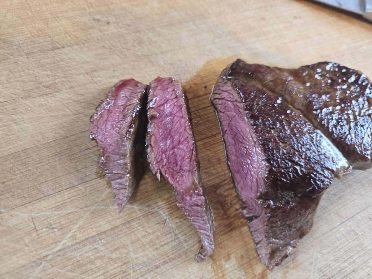 試しにかなり火を通して食べてみても、固くない・・・むしろ良い歯ごたえでこれはこれで美味しい!ガチガチにならず、臭みの無い肉ができた!