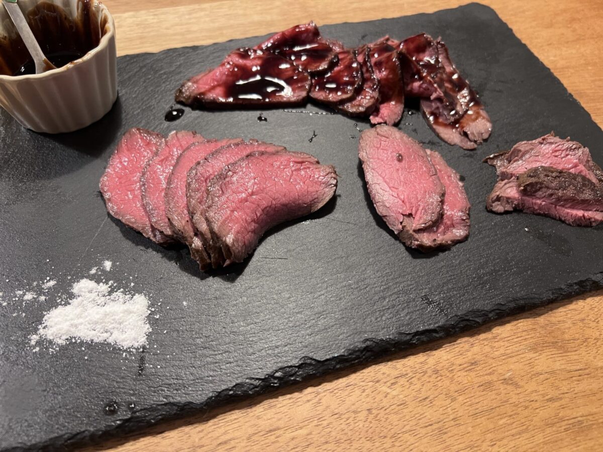 もちろん塩でもなんでもOK!低温ローストは鹿の臭みがでることがなく、鹿らしいジビエの味わいも感じる最高の料理ですよ♪