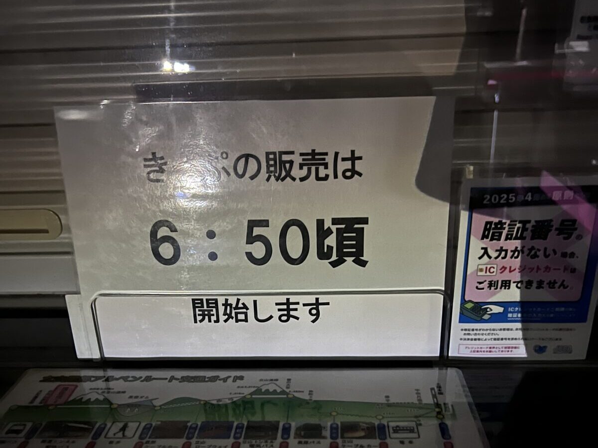 時間に合わせてチケットの購入。販売は6時50分ごろ。当たり前ですが、24時間ではありません。