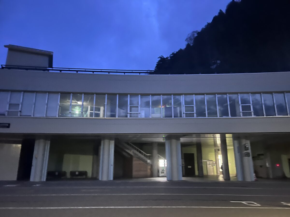 明け方の扇沢駅。朝は人もいなくて静かです。